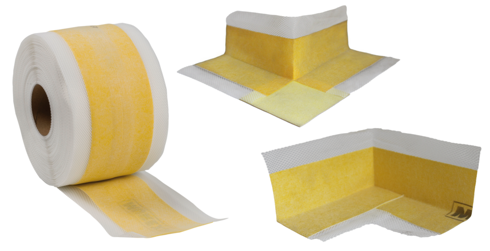 Gewebearmiertes, elastisches Dichtband mit gewebefreier Zone, beidseitig überstehendem Geweberand und Vliesbeschichtung. Wasserundurchlässig und chemisch beständig gegenüber verdünnten Säuren, Laugen und Salzlösungen. Als Systemkomponente geeignet für die Abdichtung von Anschluss- und Eckfugen im Wand- und Bodenbereich, innen und außen. Auch für Anwendungen in Schwimmbecken geeignet.